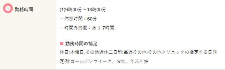 | 勤務時間 | 日勤のみ(夜勤なし) |